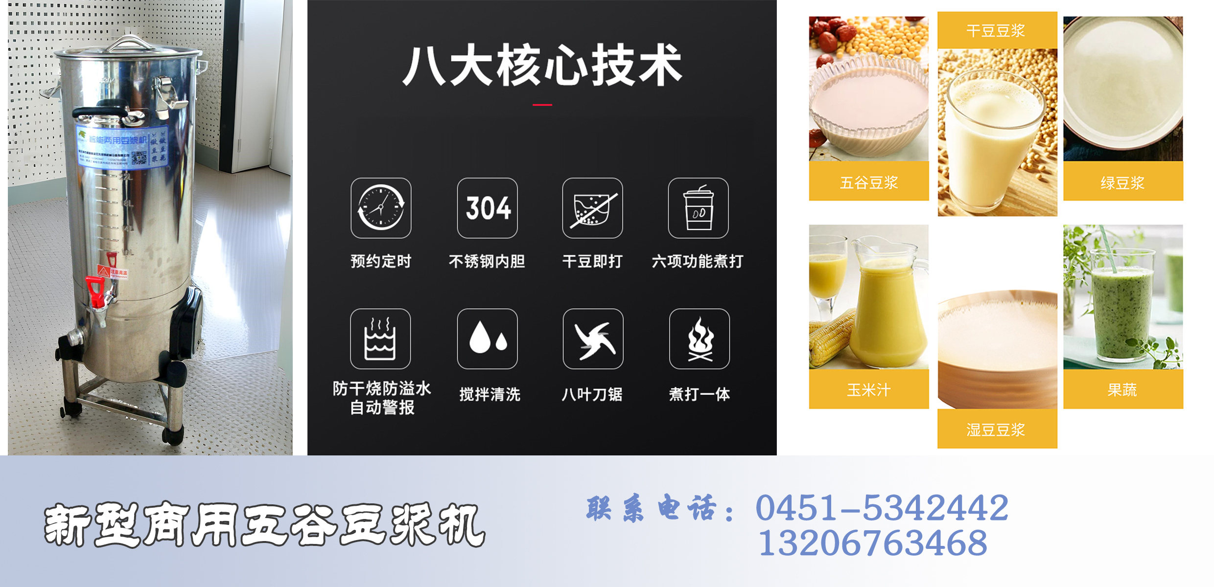 《哈爾濱市盛迪鑫金豆不銹鋼機械設備有限公司》主要經營:豆制品加工生產設備、酒店廚房設備和不銹鋼機械設備制造等,公司根據客戶需求,結合國內外同類產品的先進經驗,以不斷更新研制產品自動化為主,讓用戶使用上先進、衛(wèi)生、可靠的生產設備。2010年公司(豆腐機、豆?jié){機、煮漿機系列產品),榮獲:CHC高科技質量監(jiān)督委員會《監(jiān)督檢測合格*質量信得過產品》的稱號;2011年被評為我市的十佳創(chuàng)業(yè)之星,2016年《盛迪鑫金豆》被評選為哈爾濱市商標。